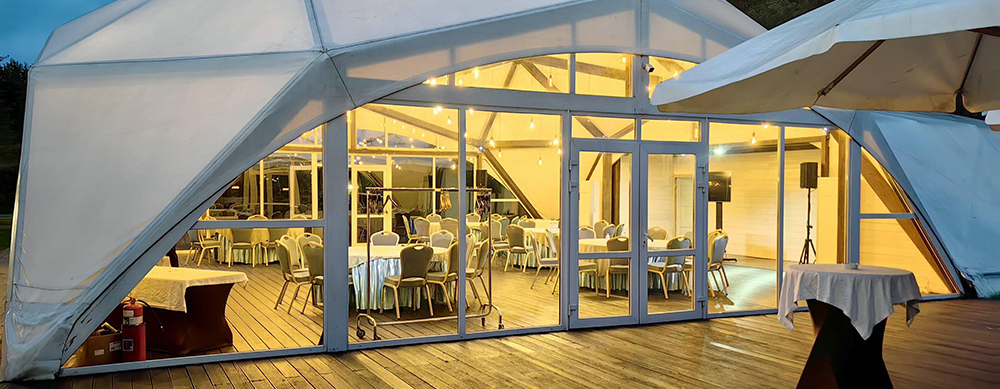 Камерный шатер, площадью 36 кв. м., вмещает до 18 человек. Идеально подходит для банкетов и празднований значимых жизненных событий.